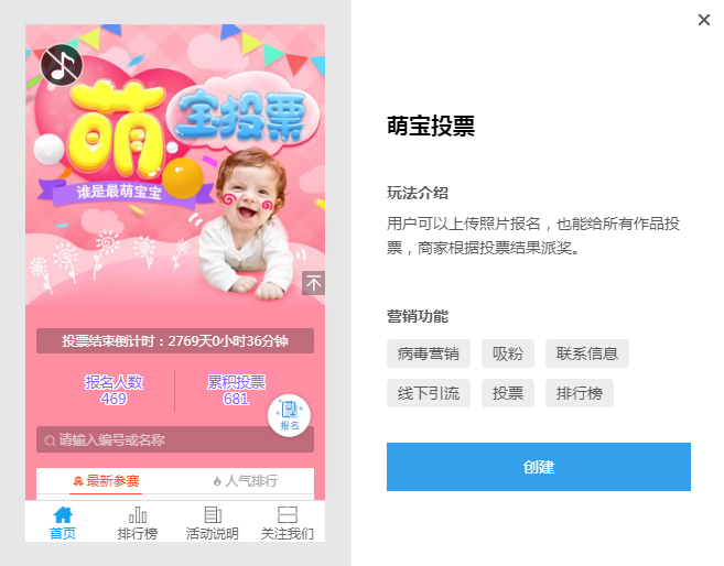 萌寶投票活動應該是在微信活動中經常看到,其實這些對于一些母嬰用品的商家來說是一個很好的營銷方式,因為一般一個寶寶參與都會邀請很多的家長進行投票,因此是一個非常好的裂變營銷...